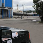 Als wir dann an der Reihe waren, ging ich schon mal zu dem Schalter, an dem zuerst die Deklaration des Autos abgewickelt wird. Bei allen ging das auch recht zügig, bis auf bei uns. Vielleicht lag es daran, dass es sich exakt um die Zollbeamtin handelte, die uns aus der anderen Reihe entfernt hatte, vielleicht war sie auch nur einfach nicht die Mitarbeiterin des Monats – auf jeden Fall wurde schon ein extra Schalter für die aufgemacht, die hinter mir warteten und Rüdiger musste schon aus der Reihe ausscheren, um den weiteren Verkehr nicht aufzuhalten… Als es soweit war, schwante mir schon Böses und ich erinnerte mich an unschöne Szenen beim Grenzübergang von Ost- nach West-Berlin im August 1989. Dann stellte sich aber doch raus, dass der Nobel-Hobel vor ein paar Tagen nach Russland eingereist ist, jetzt wieder raus möchte und alles seine Ordnung hat. Ich bin mir bis jetzt sicher, dass die Trulla vom Zoll nicht die Fahrgestellnummer, sondern die fortlaufende Nummer vom Kfz-Schein eingetippt hat.