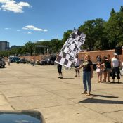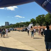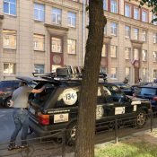 Dieser Optimismus blieb, bis plötzlich kurz nach dem Ortseingang von Iwangorod alles stoppt, der Stau an der russisch-estnischen Grenze begann. Wir kommen ungefähr 100 Meter vor einem Kreisverkehr zu stehen, der viele Fahrer mit russischen oder estnischen Kennzeichen veranlasst, rechts an allen vorbei zu drängeln, um Wartezeit zu sparen. Wir haben uns aber noch relativ gut behaupten können.