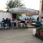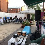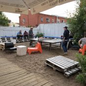 Nach dem Spiel ging es dann relativ schnell los mit leckerem Essen (Schweinefleisch, Grillgemüse und Kartoffel-Püree, total lecker gewürzt) und dem einen oder anderen Kaltgetränk. Die Saunen wurden eröffnet, man hat sich die ganze Zeit mit diversen Leuten unterhalten, die Stimmung war bei allen super (trotz der Fußball-Pleite) – und dann stellt man fest, dass es plötzlich dunkel ist – auch daran muss man sich erst einmal wieder gewöhnen.